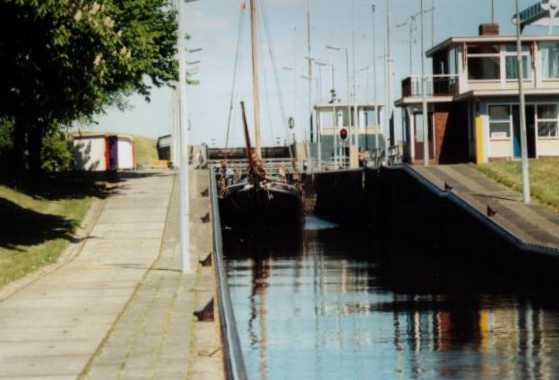 komen. Hier de sluis bij Delfzijl die van de Eems naar het Eemskanaal voert. |