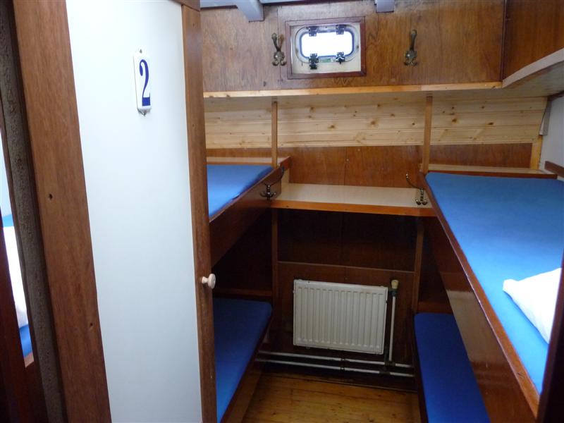 We bieden u een geriefelijk onderdak voor een groep tot 16 personen. U kunt het schip beschouwen als uw varende vakantiewoning, in de kombuis vindt u alles wat u nodig heeft. Op aanvraag is catering mogelijk. Er zijn vier hutten, elk met vier kooien. Twee hutten hebben vier enkele bedden, één hut heeft twee dubbele bedden en één hut heeft een dubbel bed en twee enkele bedden. De Zwarte Ruiter is een voormalig zeilvrachtschip, dat tot 1963 zonder motor gevaren heeft. Het was de laatste tjalk in Nederland die zonder motor op zeil vracht vervoerd heeft Met