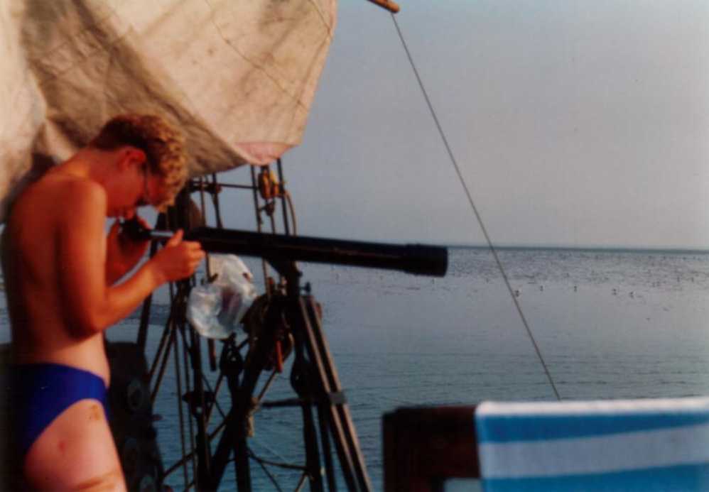gemaakt onder Ameland, dat aan de horizon nog net te